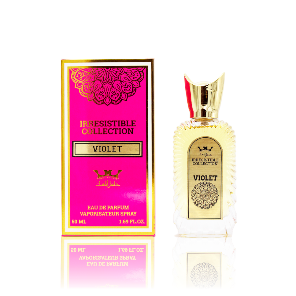 A soft, graceful fragrance blooming with delicate violet petals, sweet jasmine, and creamy white musk. It’s an enchanting scent perfect for romantic evenings and quiet moments of sophistication.